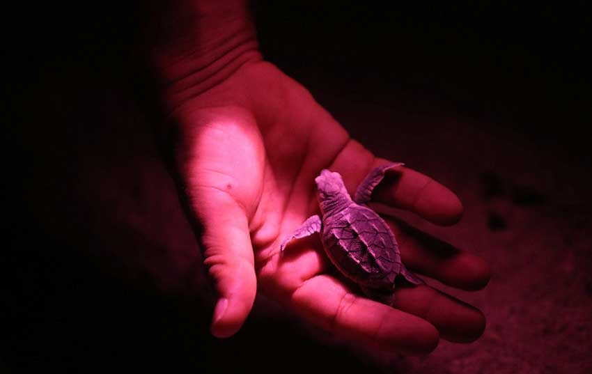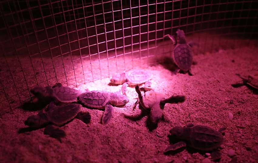 به دلیل اینکه نوزادان لاک پشت پس از بیرون آمدن از تخم ها به طور غريزی به سمت نور ماه حركت مي كنند، هر ساله اداره محیط زیست کیش با هماهنگی شرکت آب و برق کیش بخاطر تهدید نورهای مصنوعی برای گمراه کردن نوزادان چراغ های جاده جهان در مجاورت منطقه حفاظت شده جنوب جزیره را خاموش می کند.