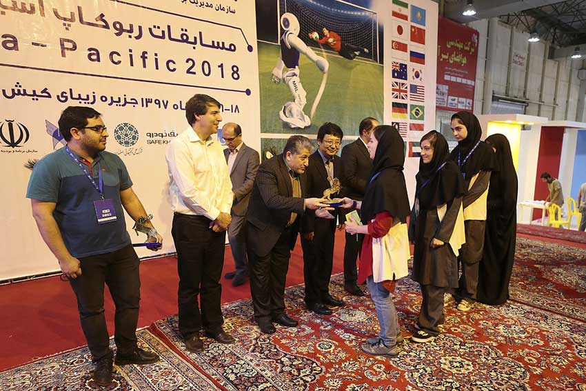 در مسابقات بین المللی ربوکاپ آسیا و اقیانوسیه ۲۰۱۸، تیم های روسیه، سنگاپور، مالزی، چین و ژاپن و تیم های مختلف از دانشگاه ها و مدارس کشور علاوه بر ارائه دستاوردهای خود، با یکدیگر به رقابت پرداختند. ربات اطفاء حریق، ربات پیکِن پِلِیس و ربات زیر آبی و جستجوگر در عمق ۱۰۰ متر نمونه هایی از ربات های ساخته شده به دست دانشجویان و پژوهشگران ایرانی و ربات آتش نشان، امداد جو، زیر دریایی، حمل کالا به صورت پروازی و حمل کالا در انبارداری و لجستیک کارخانه های صنعتی از دستاوردهایی بود که در نمایشگاه رباتیک کیش ارائه شد.
