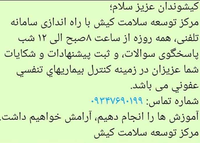 منبع: روابط عمومی مرکز توسعه سلامت کیش