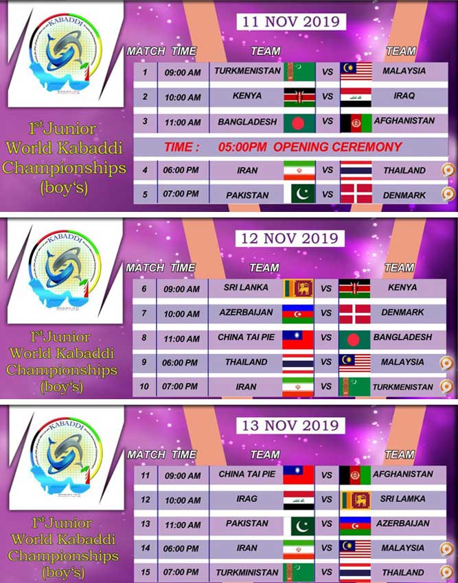 *** برنامه مسابقات کبدی جوانان جهان …***
