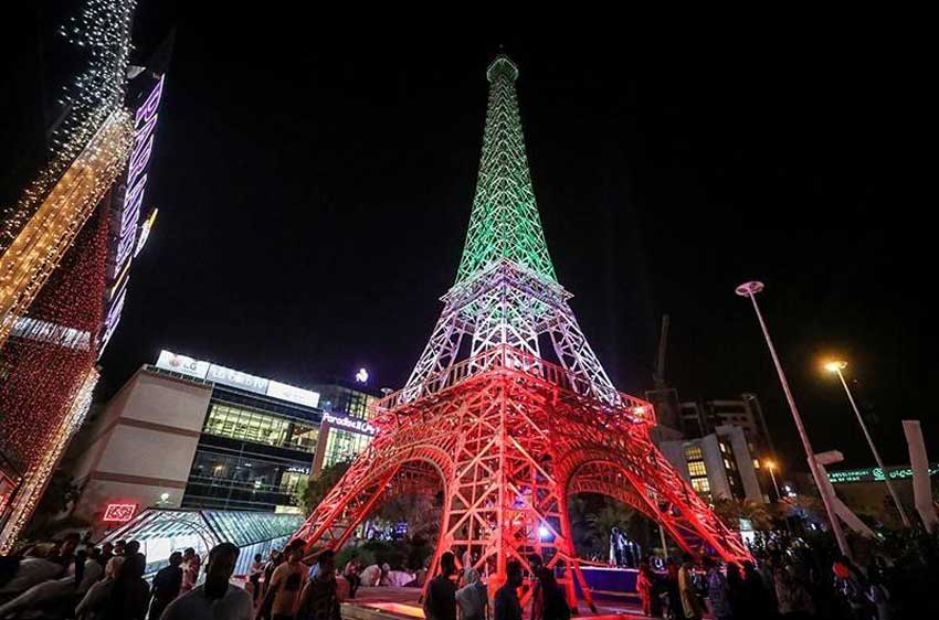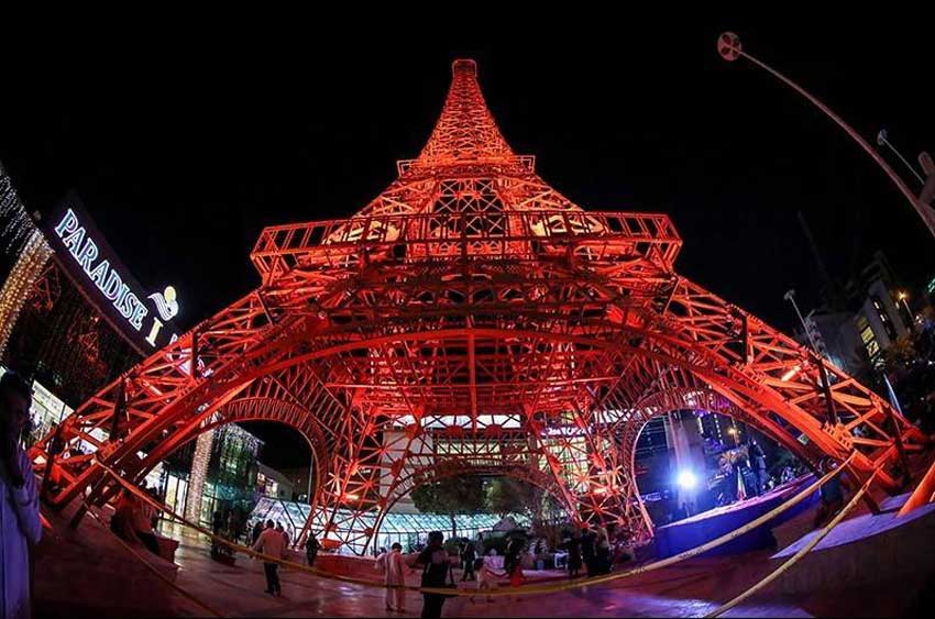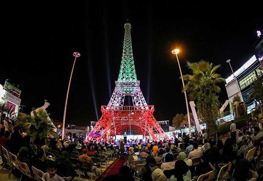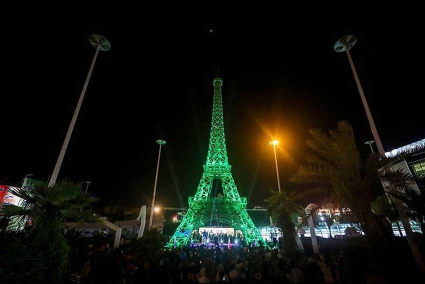برج نمادین ایفل در کیش با سرمايه گذاری بخش خصوصي و با ارتفاع ۳۰ متر درمحوطه بیرونی بازار پردیس نصب و رونمايی شده است. طراحی ، ساخت و نصب برج نمادین ایفل کیش به وسیله مهندسان و طراحان ایرانی اجرا شده است. برج نمادین ایفل کیش با ۳۵ تن وزن، در برابر زلزله و بادهای شدید مقاوم است. تنظیمات نورپردازی برج ایفل کیش به صورت وایرلس و کاملاً موزیکال انجام شده است.