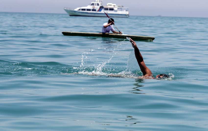 رکوردزنی شناگران منتخب کیش توسط این ورزشکاران به مربیگری جواد روئینا از ساعت ۷ صبح، در حضور نماینده فدراسیون شنای ج.ا.ا و با همراهی امور دریایی و حراست موسسه ورزش و تفریحات سالم و دو قایقران کانوسوار، انجام شد و شناگران منتخب جزیره مسافت بندر آفتاب تا جزیره کیش را به مدت ۷ ساعت طی کرده و برای اولین بار رکورد ۱۸ کیلومتری شنای آبهای آزاد را در کشور ثبت کردند.
