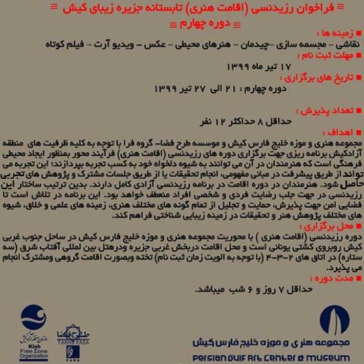 فراخوان رزیدنسی مجموعه هنری و موزه خلیج فارس کیش در تابستان ۱۳۹۹