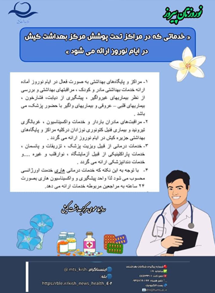 مراکز تحت پوشش مرکز بهداشت کیش در ایام نوروز ۱۴۰۳