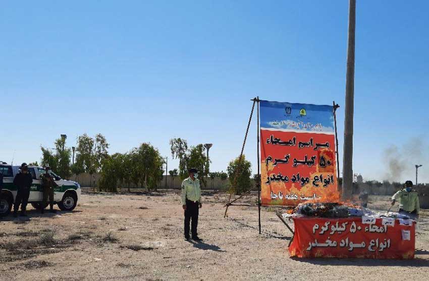 در این مراسم ۵۰ کیلوگرم مواد مخدر که از کشفیات امسال پلیس مبارزه با مواد مخدر کیش بود امحا شد.