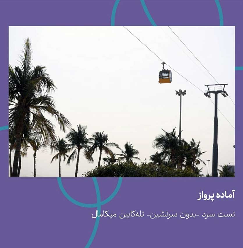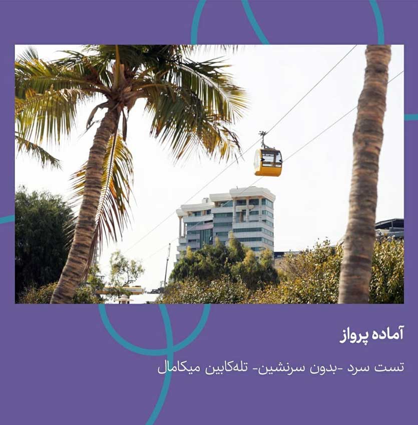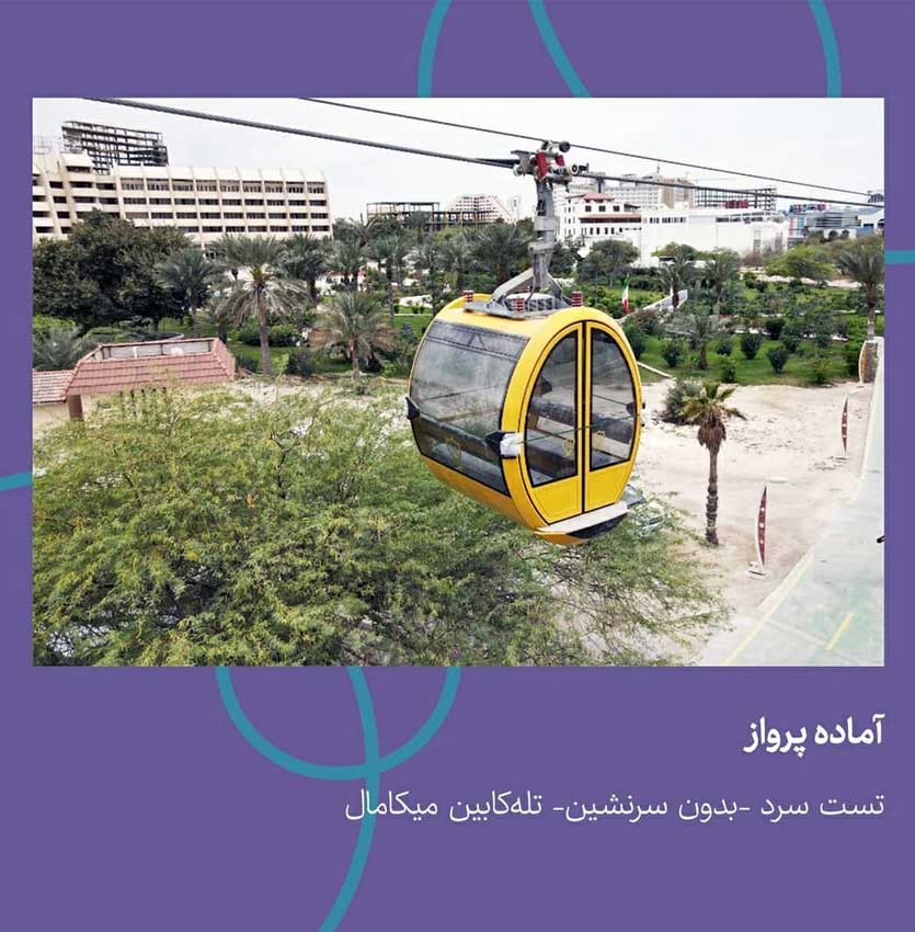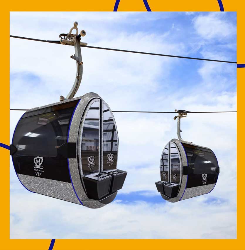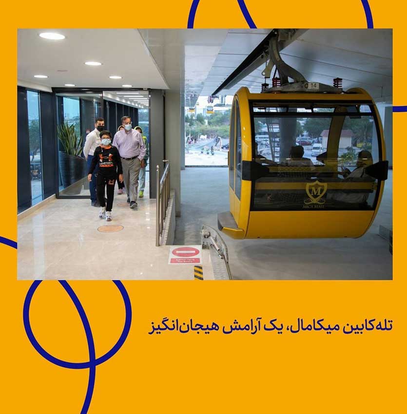 با تله کابین کیش سفری دو و نیم کیلومتری بر فراز جزیره زیبای کیش و آب های نیلگون خلیج فارس از بام میکامال کیش (طبقه چهارم) تا اسکله بزرگ تفریحی کیش و برعکس را تجربه کنید. برای فراهم کردن اوقات لذت بخش، تمام کابین ها به سیستم خنک کننده، LCD، Wi-Fi و موزیک مجهز شده است.